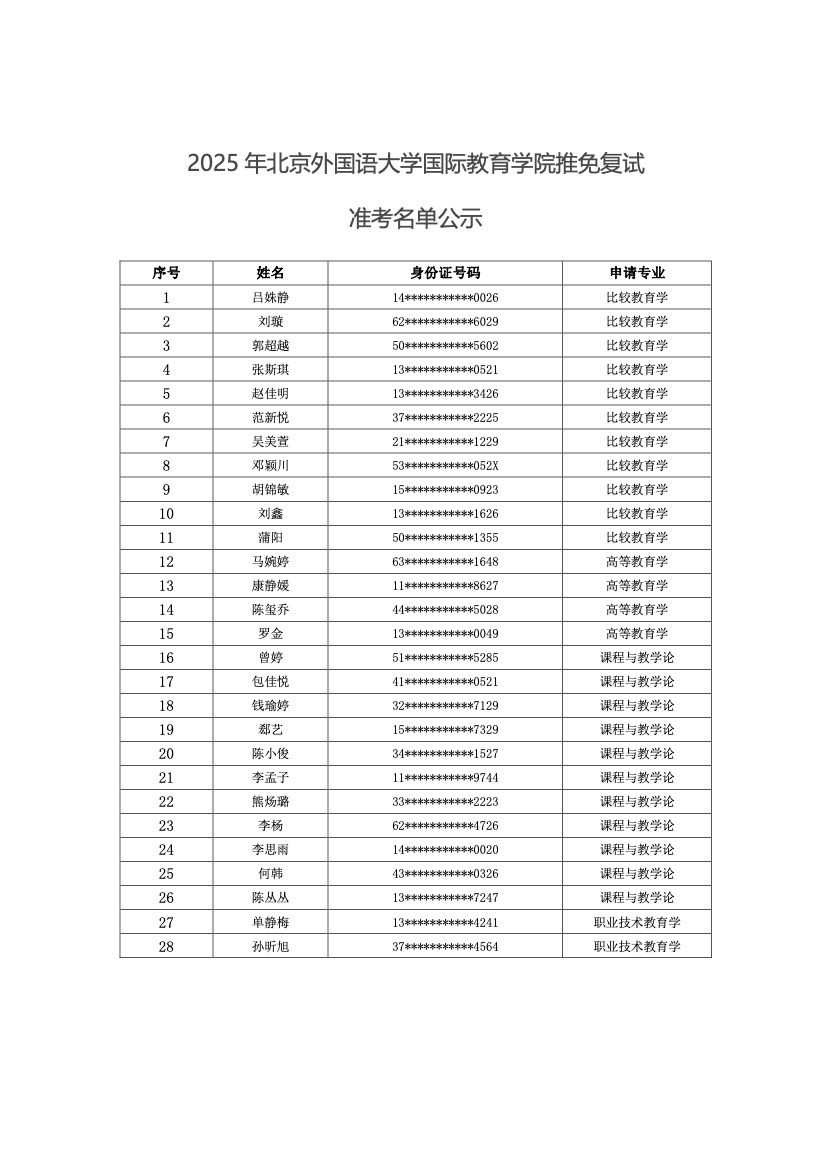 2025 年北京外国语大学国际太阳成集团tyc7111cc推免复试准考名单公示