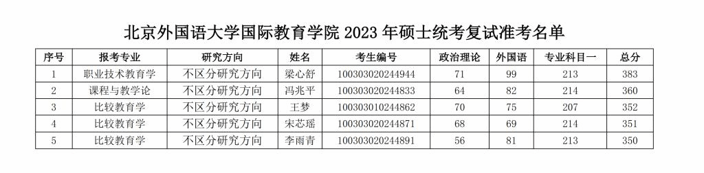 北京外国语大学国际太阳成集团tyc7111cc2023年硕士统考复试准考名单