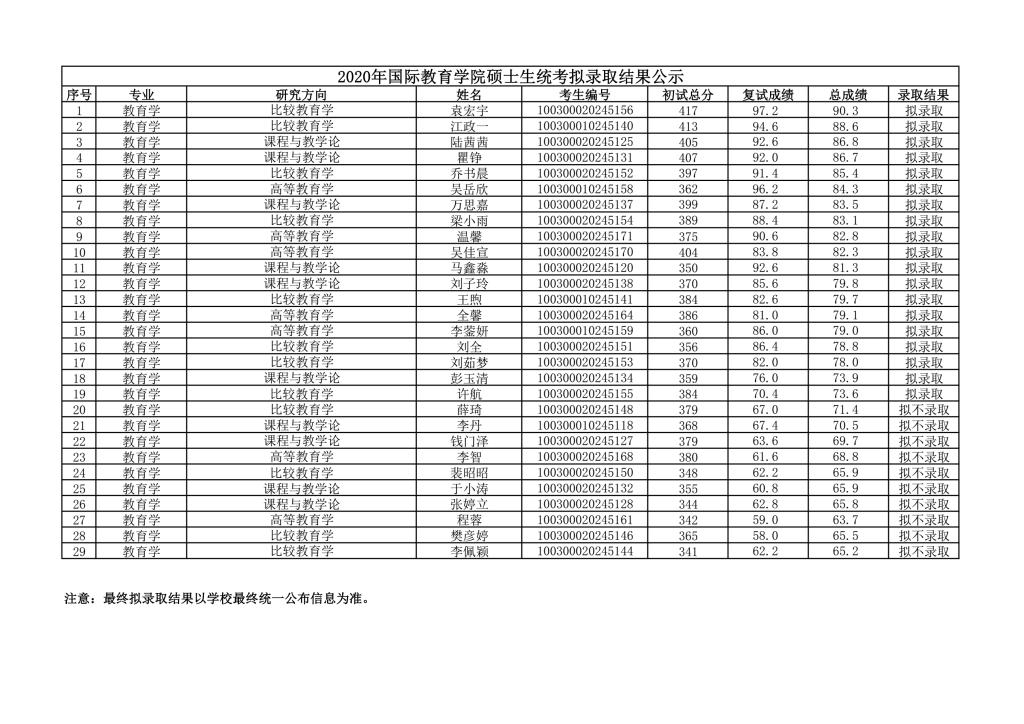 2020年国际太阳成集团tyc7111cc硕士生统考拟录取结果公示
