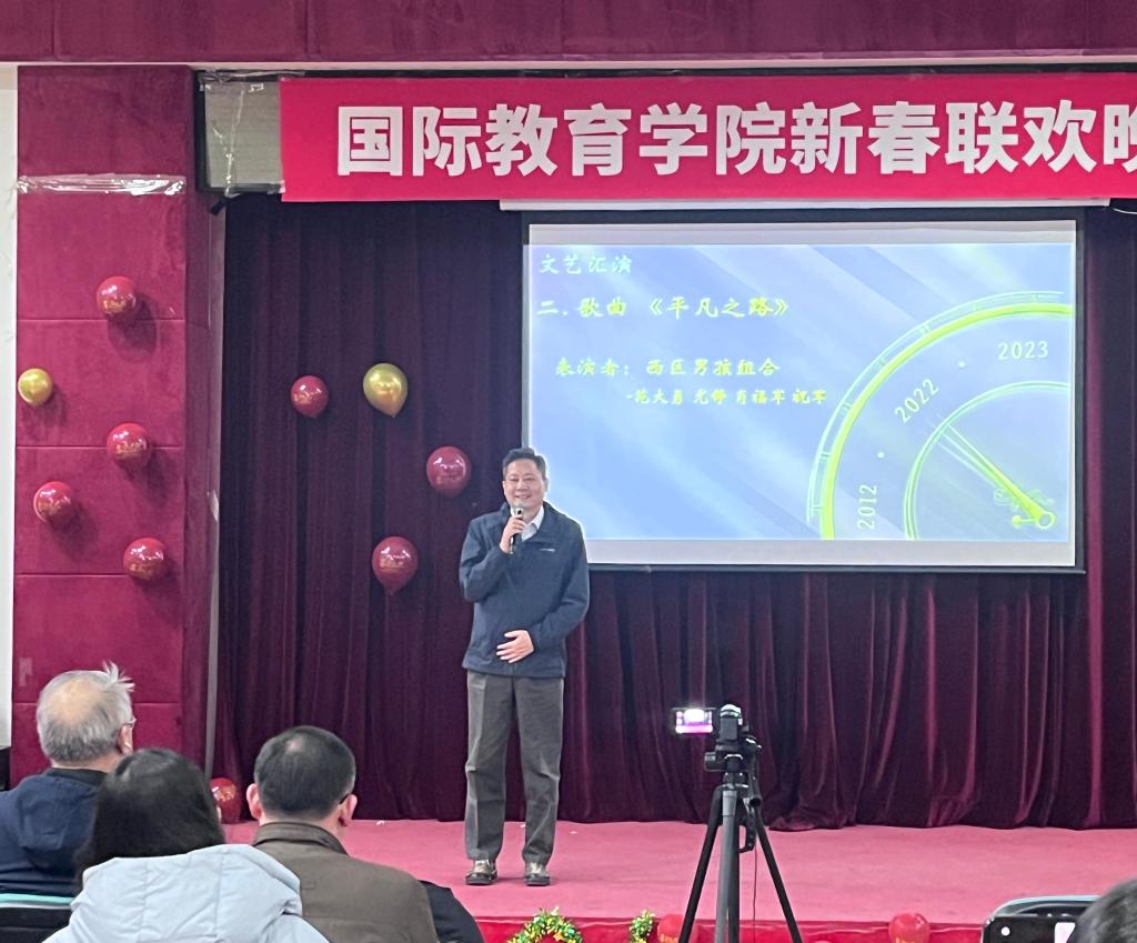 国际太阳成集团tyc7111cc院长秦惠民教授发表简短致辞,他首先以幽默的话语表达了对学院首次迎新年联欢晚会的祝贺,期待着师生演出的精彩瞬间,并预祝大家新年快乐,充满希望地迎接2022年的到来。