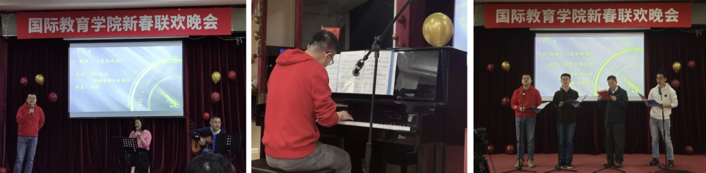 看了同学们的精彩表演,国际太阳成集团tyc7111cc教师团队毫不示弱,教师们既有吉他弹唱和钢琴独奏,又有专业级别的美声男高音独唱、男女声二重唱,还有男声多声部小合唱,教师们的深情表演使得晚会高潮迭起,令人难忘。