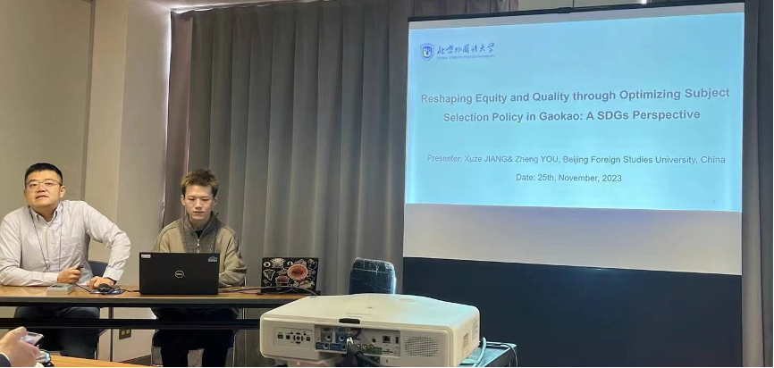 尤铮博士作了两个分会场报告,分别和我院硕士研究生蒋旭泽、杨晓坤合作报告了《Reshaping Equity and Quality through Optimizing Subject Selection Policy in Gaokao: A SDGs Perspective》和《China-Africa Vocational Education Cooperation under Government-Industry-University-Research Collaborative Mechanism in the post-conflict period --Tanzania National Vocational Standards Development Project as an Example》,回应联合国提出的可持续发展目标。