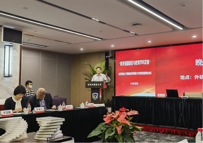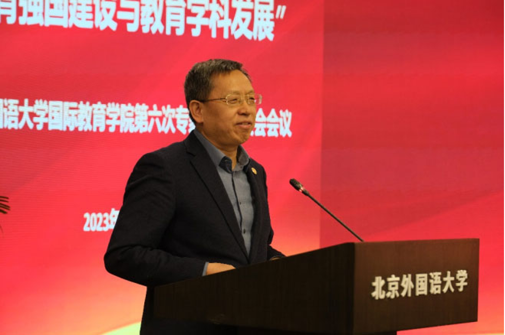 中国教育科学研究院副院长马陆亭研究员做了题为《北外教育学科如何支撑强国建设》的主旨报告,他从教育学科的发展和北外教育学科的特色重点两个方面阐述了自己的观点,他认为,以人的成长为逻辑起点的微观教育学和以教育社会功能实现为逻辑起点的宏观教育学共同推动我国教育事业发展。