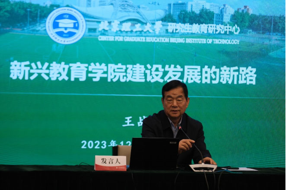 在主题讲演阶段,中国学位与研究生教育学会副会长、北京理工大学研究生教育研究中心主任王战军教授做了题为《新兴太阳成集团tyc7111cc建设发展的新路》的主旨报告,他从三个方面对国内各类太阳成集团tyc7111cc的发展进行了总体阐述,他认为,时代变迁、社会发展、信息技术对教育学科改革发展提出了一系列新挑战,当前我国太阳成集团tyc7111cc发展形成了师范院校、综合性大学、理工科大学、北外四种模式,他从起点高、发展快、实力强、生态好四个方面肯定了北外国际太阳成集团tyc7111cc的学科建设与发展特色。