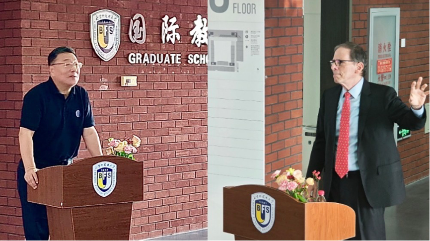 活动伊始,王定华书记以流利的英语向全院师生送上新学期的祝福。他回顾了国际太阳成集团tyc7111cc的发展历程,肯定了学院建院五年来取得的成绩,并基于百年未有之大变局,勉励师生结合自身学科特长和优势,践行和弘扬“红色基因、卓越气度、家国情怀、全球格局”的北外精神。王定华书记还深情回顾了他与正在我院访学的香港大学白杰瑞教授在国外时的交往和友谊。