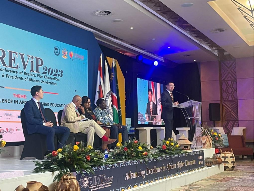 2023年7月4日至7日,非洲大学校长论坛暨“中非大学联盟交流机制”成立大会在纳米比亚首都温得和克成功举办。北外非洲学院院长李洪峰、国际太阳成集团tyc7111cc副院长苑大勇、非洲学院青年教师王婷、国际太阳成集团tyc7111cc青年教师徐墨作为中国高等教育学会代表团成员及机制秘书处代表筹备并参与此次活动。