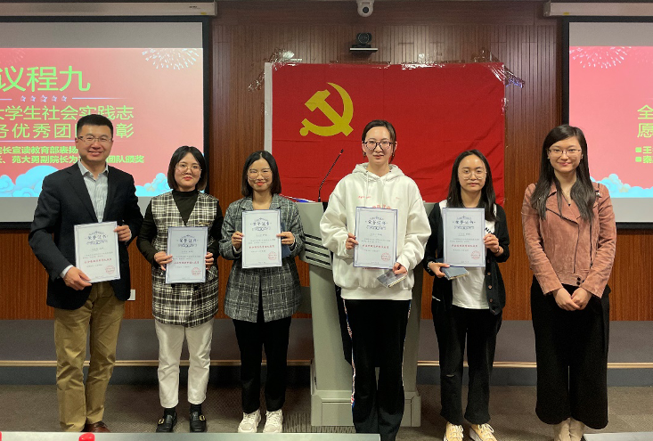 接下来,2021年全国大学生社会实践志愿服务优秀团队、学院国情教育社会实践团的同学们以视频和报告相结合的方式生动展示了团队的实践经历,指导教师代表巫锐老师以“扎根本土大地”与“世界性”的关联为主题,就该项目进行了分享和反思。学院领导宣读了教育部、团中央给予实践团队成员的表扬信,并为社会实践团师生颁发了表彰证书。