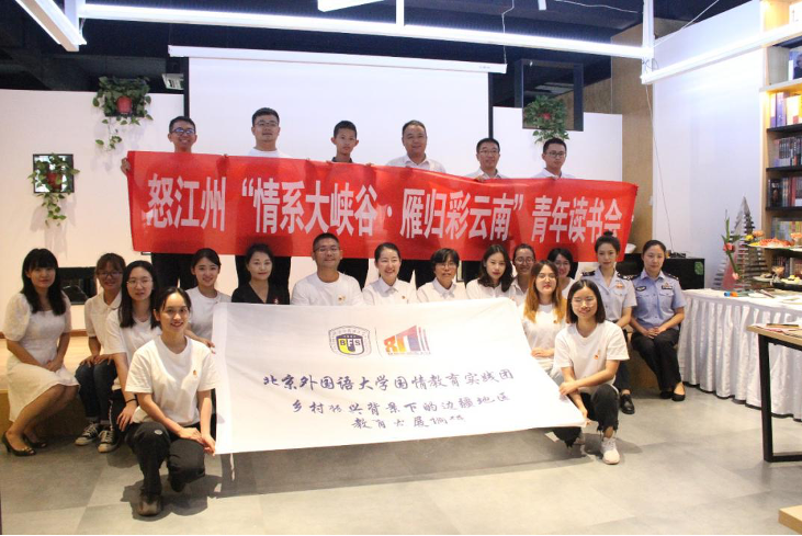 北京外国语大学国情教育实践团与怒江团州委、怒江州驻京招商联络处共同举办了“情系大峡谷·雁归彩云南”青年读书会。实践团成员与怒江各界青年代表共同学习了习近平总书记在庆祝中国共产党成立100周年大会上的重要讲话、诵读了习近平总书记对青年的寄语、观看了国家形象外宣视频,进一步了解了中国共产党的初心和使命。最后,实践团师生现场合唱了北外校歌《永远为人民服务》,将活动气氛推向了高潮。