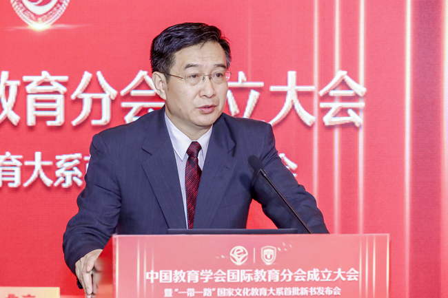 杨银付代表中国教育学会对国际教育分会的成立表示祝贺,他指出,国际教育分会的成立是众望所归,也恰逢其时。杨银付从组织开展学术研究、研制专业评价标准、促进教育交流合作、开展师资培训、讲好中国教育故事等方面分享了关于分会定位和发展思路的构想。他用“四个坚持、四个提升”对分会提出了希望和要求:第一,坚持政治建会,提升引领力;第二,坚持服务立会,提升贡献力;第三,坚持学术兴会,提升竞争力;第四,坚持科学治会,提升保障力。杨银付表示,希望大家在王定华理事长的带领下,不忘初心,牢记使命,精诚团结,为我国国际教育发展做出卓越的贡献。