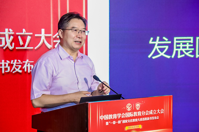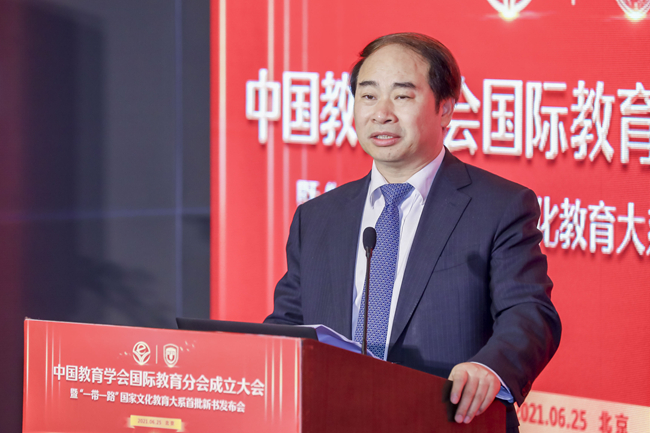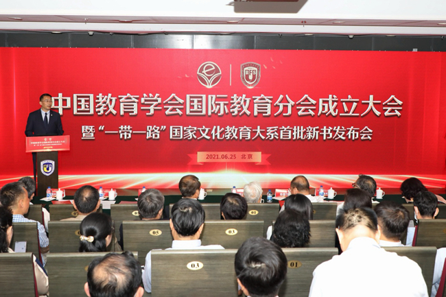 2021年6月25日,在举国上下喜迎中国共产党建党100周年之际,中国教育学会国际教育分会成立大会暨“一带一路”国家文化教育大系首批新书发布会在北京外国语大学国际大厦隆重举行。