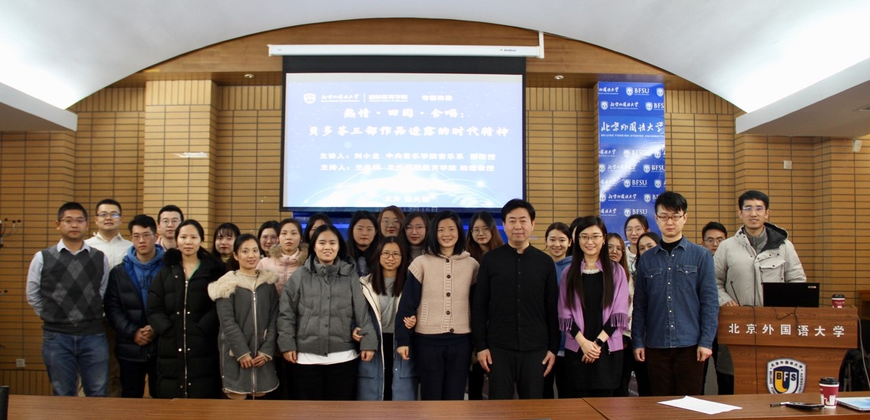 为提升我院师生的人文艺术素养和音乐鉴赏能力,12月16日上午,中央音乐学院音乐学系刘小龙副教授应邀来我院做专题讲座,他以“热情·田园·合唱:贝多芬三部作品透露的时代精神”为题,纪念贝多芬诞辰250周年。我院硕博研究生、部分教师和国际关系学院的学生参加了此次活动,整场讲座内容充实、精彩纷呈,深受欢迎。