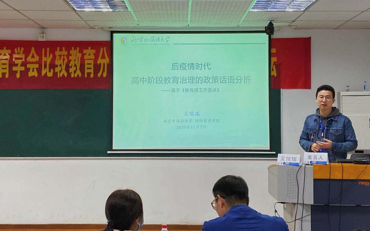 我院2020级博士研究生吴瑞瑞在博士生论坛做了题为“后疫情时代高中阶段教育治理的政策话语分析——基于《教育部工作要点》的分析”的报告。