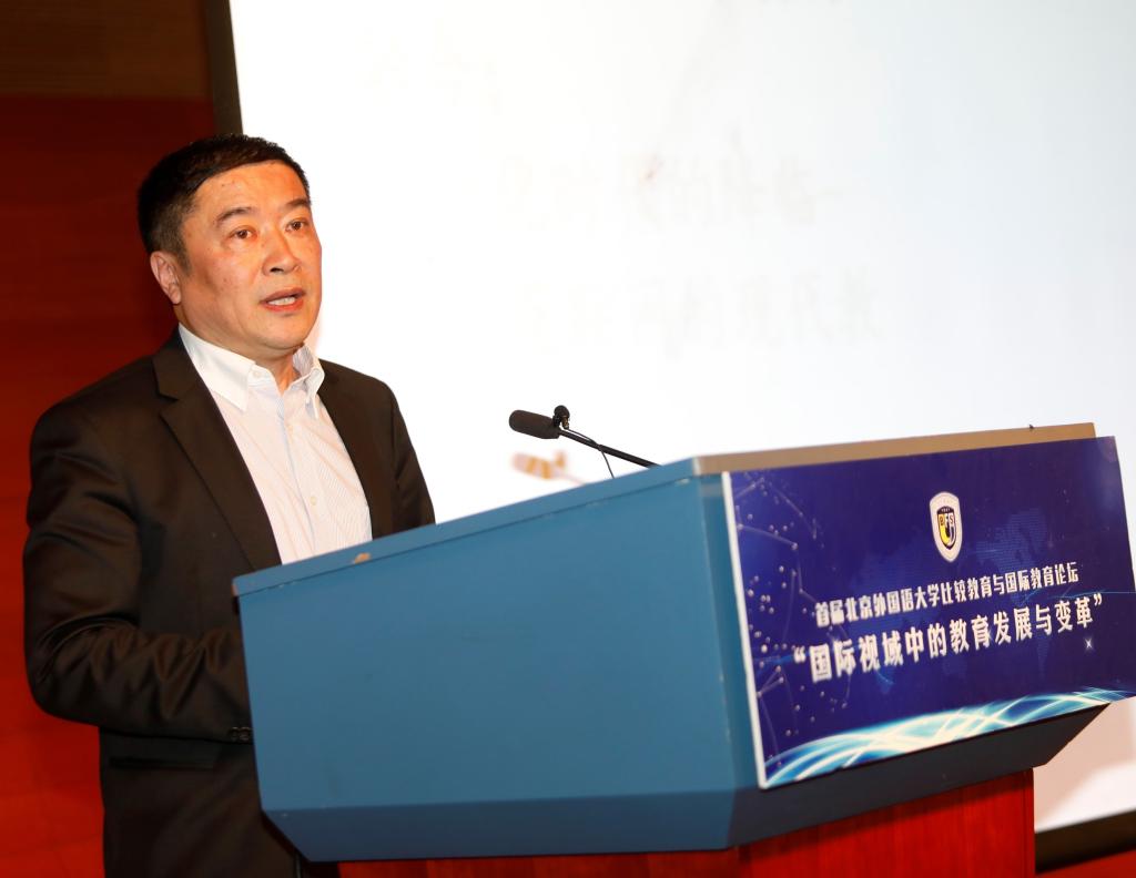党委书记王定华教授首先在开幕式上致辞。他向与会代表和嘉宾介绍了北外在新时代实现大学发展和加强学科建设的战略目标和发展定位。他指出,在推动“一带一路”和构建人类命运共同体的过程中,我国比较教育和国际教育工作者要在人才培养、科学研究和国际交流中承担时代使命。比较教育不仅是一种方法,更是一种服务于国家战略的研究视域,一个学科,一个新的增长极。基于这样的考虑,北京外国语大学于2018年在原有太阳成集团tyc7111cc基础上,正式挂牌组建成立北京外国语大学国际太阳成集团tyc7111cc。北外国际太阳成集团tyc7111cc将凝练特色,发挥北外优势,突出比较教育,重视高等教育,兼顾政策法规,中外联合培养,实行双语教学,推出重要成果,服务“一带一路”,力求弯道超车,所以比较教育、国际教育是未来发展的重点,北外的学科优势也能够支撑这样的发展重点。与此同时,学校党委已决定超常规支持国际太阳成集团tyc7111cc的发展壮大,在经费和政策上予以进一步倾斜,筑巢引凤,张开双臂欢迎海内外学者前来加盟,共同建设国际太阳成集团tyc7111cc。