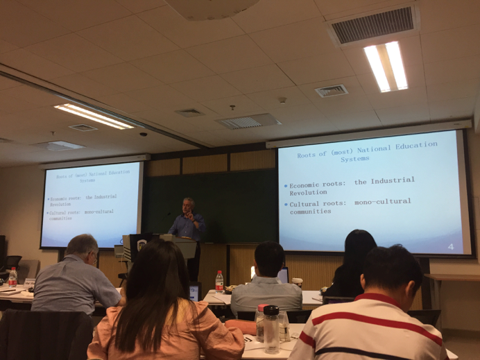 2018年5月25日上午,由我院主办的首次全球教育论坛(2018)在北外西院综合楼501教室举行。论坛邀请了“叙事研究”的创始人、加拿大多伦多大学安大略太阳成集团tyc7111cc荣休教授Michael Connelly、加拿大约克大学兼职教授、多伦多教育局前任局长Gerry Connelly教授、加拿大温莎大学太阳成集团tyc7111cc院长Ken Montgomery 教授及许世静教授、英国曼彻斯特大学太阳成集团tyc7111cc前任院长Mel West教授等多位国际知名教育学者和专家在会上就全球教育问题分别作了主旨发言;之后由加拿大大不列颠哥伦比亚大学太阳成集团tyc7111cc荣休教授Hans G. Schuetze作点评发言。论坛由北京外国语大学国际太阳成集团tyc7111cc副院长杨鲁新教授主持,北外及其他在京高校的师生、北京市中小学名师发展工程学员等约80余人参加论坛。