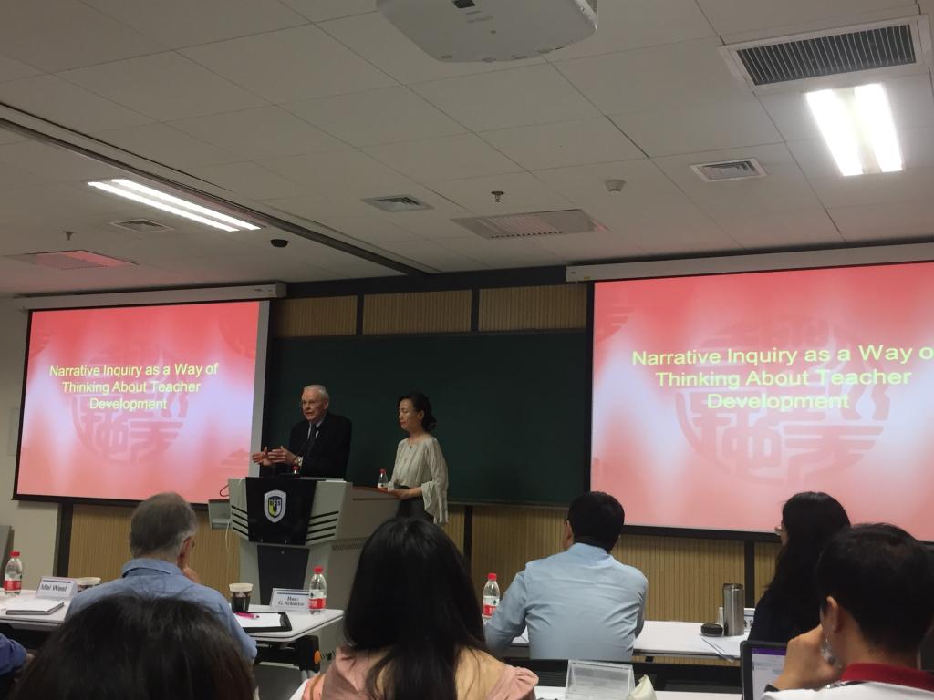之后,Michael Connelly教授谈到“叙事研究”在全球化情境下的意义。他认为,教育改革在全球范围取得了令人欣慰的成就,但也有不尽如人意的地方。近些年在英国和北美,课程培养模式整体有了较大的调整,其中教师发展是核心主题。Michael Connelly教授区分了“knowledge for teachers”和“teachers’ knowledge”两个重要概念,强调在进行教师教育相关研究时,我们不仅要关注教师应该具备的知识(专业课程知识、教学法等),更要关注教师自身所具备的知识,即以叙事的视角去研究教师个人的成长历史。而教师需要了解自己,也需要了解自己的学生这样一群活生生的个体。最后,Michael Connelly教授强调了“互惠学习”的观点,即不能用竞争的眼光看待世界,而是寻求可能的双赢与和谐共处。