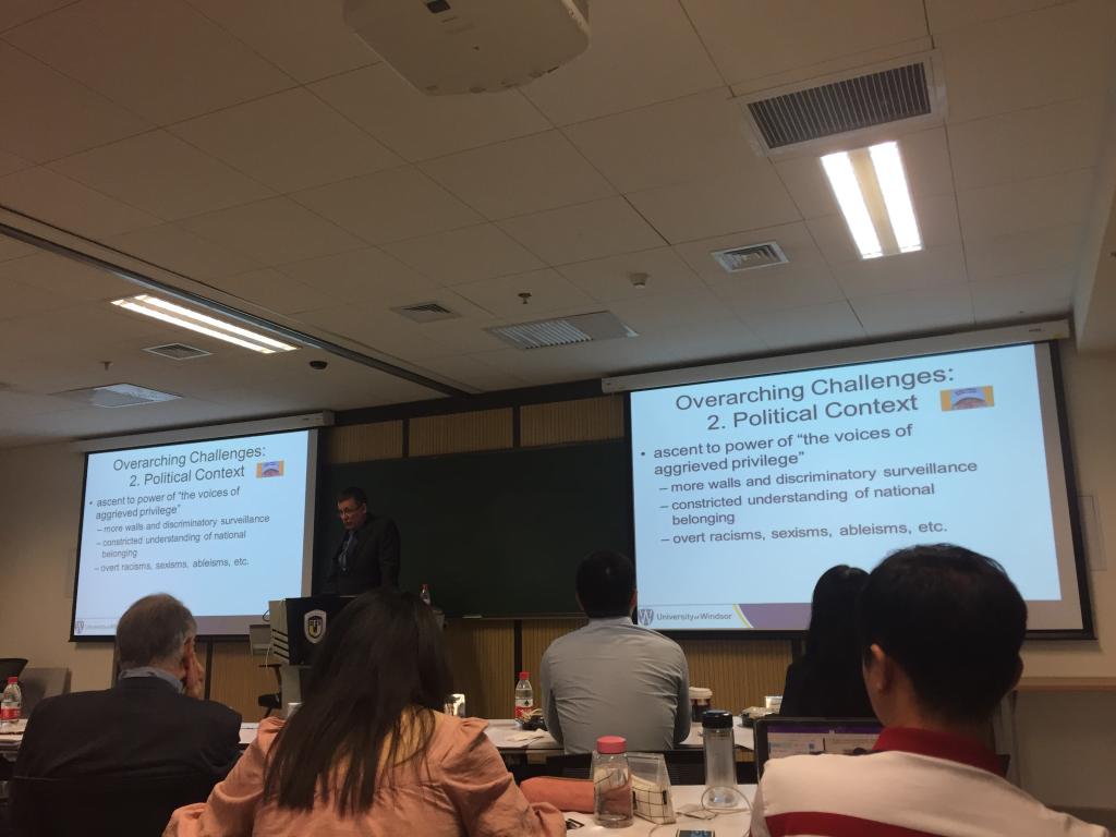 随后,Ken Montgomery教授作了以“A Perspective on Opportunities, Challenges, and Priorities for Canadian Faculties of Education”为题的专题讲座。他从经济和政治两个方面介绍了目前加拿大教育系统所面临的双重挑战:在经济上,政府拨款数额减少;在政治上,交流壁垒增加。他强调了在此情势下教育能发挥的作用,同时介绍了温莎大学太阳成集团tyc7111cc的七个发展机遇,包括社会法制教育、心理健康教育、可持续发展教育、学龄前教育、创造性教育、国际化教育及思辨性大学教育。期间,他动情地讲述了加拿大一名患有心理缺陷疾病儿童的生活遭遇,特别强调了发展学生心理健康教育的重要意义。最后,Ken Montgomery教授对温莎大学太阳成集团tyc7111cc的研究生课程和学业规划进行了概述,介绍了现有的教育项目和未来的发展方向。