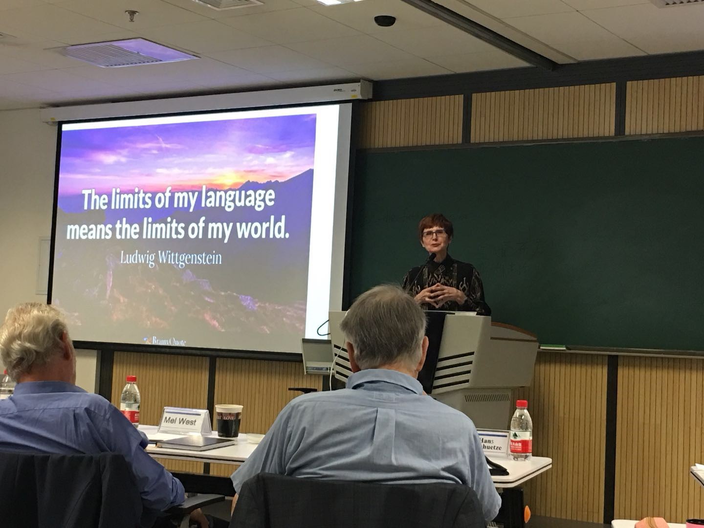 “一个人语言的边界,就是他所拥有的世界的边界”——Gerry Connelly教授以“Teaching Language in Canada”为专题,从自己的经历谈起,介绍了加拿大的浸入式教学、“世界语言”、以及非洲的语言保护计划等问题。Gerry Connelly教授认为,作为一个移民国家,语言和文化的多样性是加拿大的优势。作为有两着种官方语言——英语和法语的国家,培养学生理解、尊重不同的语言和文化一直是加拿大语言教育的主题。在具体的教学组织上,加拿大没有国家层面的教学大纲或计划,各省根据人口、文化的具体情况制定自己的教学计划。但是全国都注重培养学生的双语能力,特别是法语技能。例如,加拿大有不同的法语教学系统,有按学时将法语作为一门学科来进行教学的系统;有将四分之一左右的科目用法语进行教学的系统;也有最受家长欢迎的“浸入式法语课程”。Gerry Connelly教授希望这样的英、法语教学理念能够推广,从而实现外语教学的重要目标——对不同文化的理解与包容。