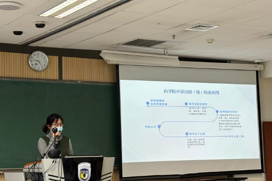 会议伊始,王名扬副院长介绍了本次会议旨在为学院所有具备出国(境)留学、实习实践、参加学术会议需求与意向的学生提供经验指导,重点解答学生出国(境)交流学习过程中遇到的困境,帮助学生们提前做好出国(境)交流的规划和准备。