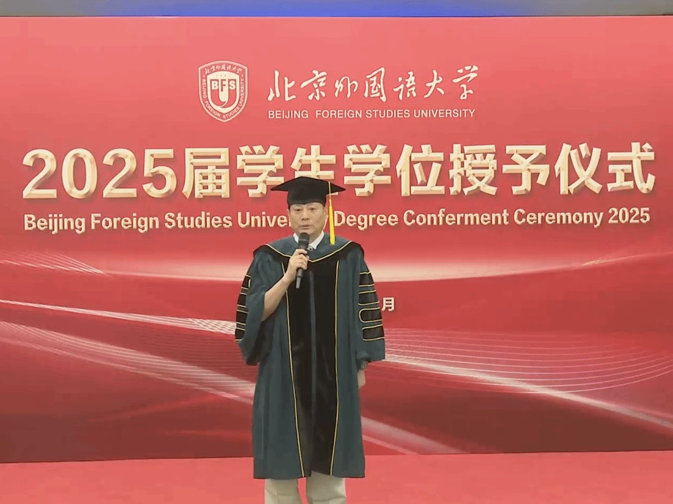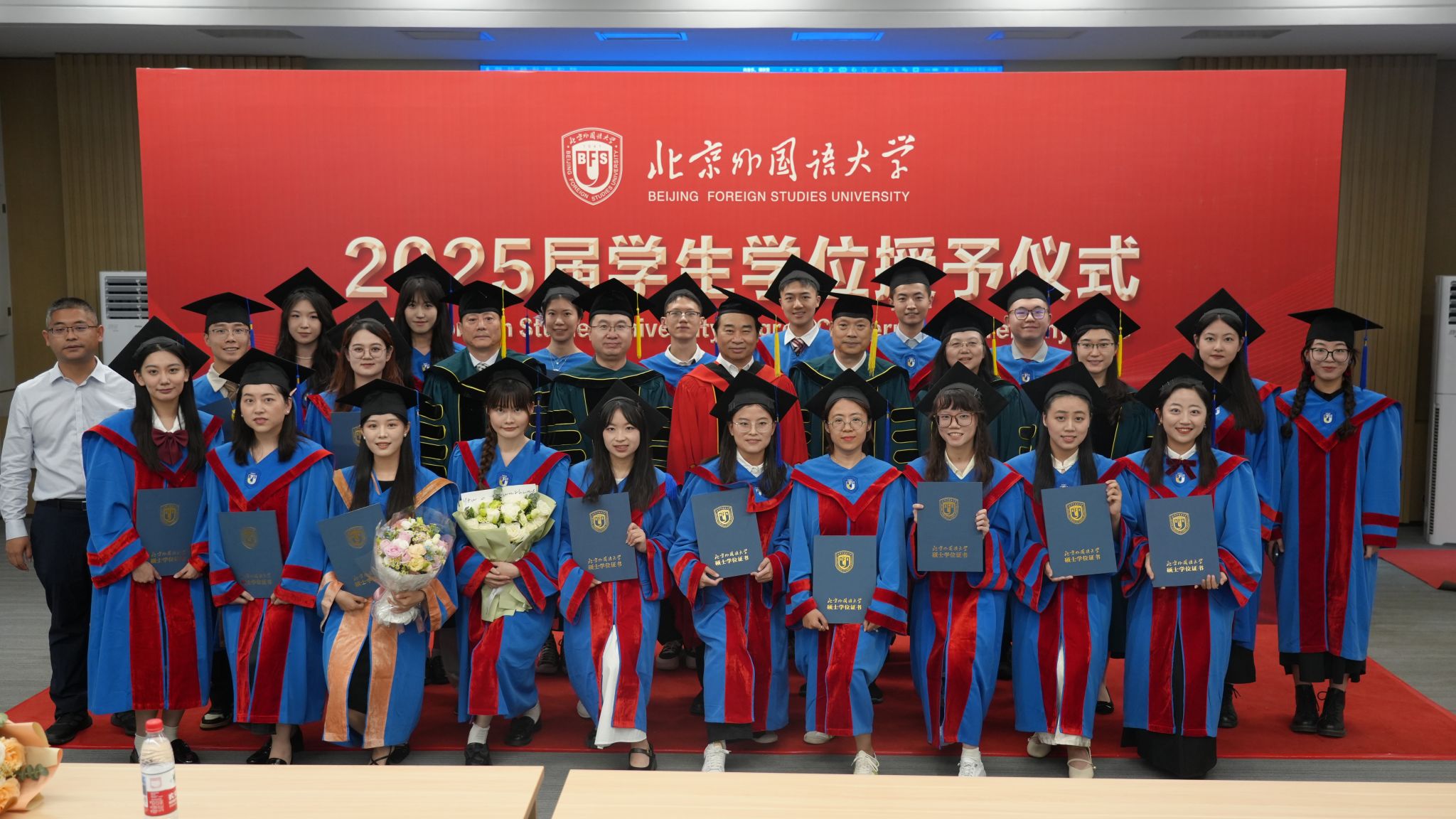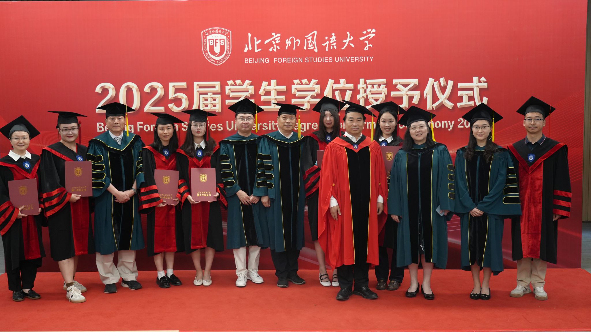 仪式尾声,全体领导、教师与毕业生集体合影,定格这一重要时刻。愿毕业生们铭记北外教诲,在各自领域砥砺前行,为社会贡献力量。