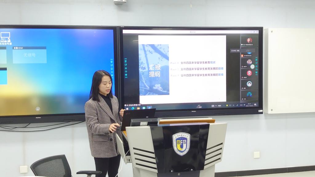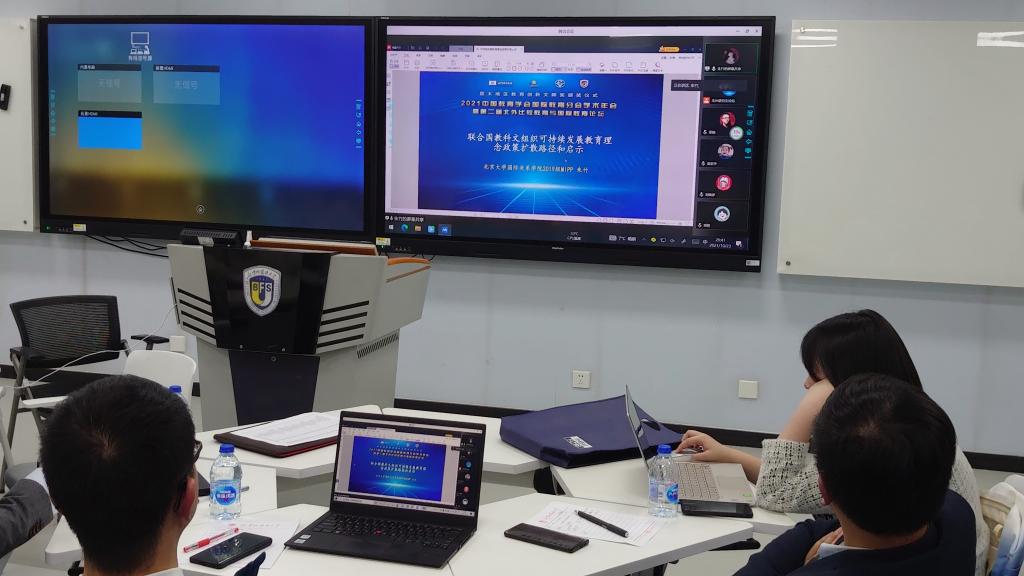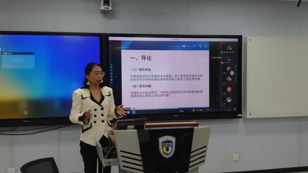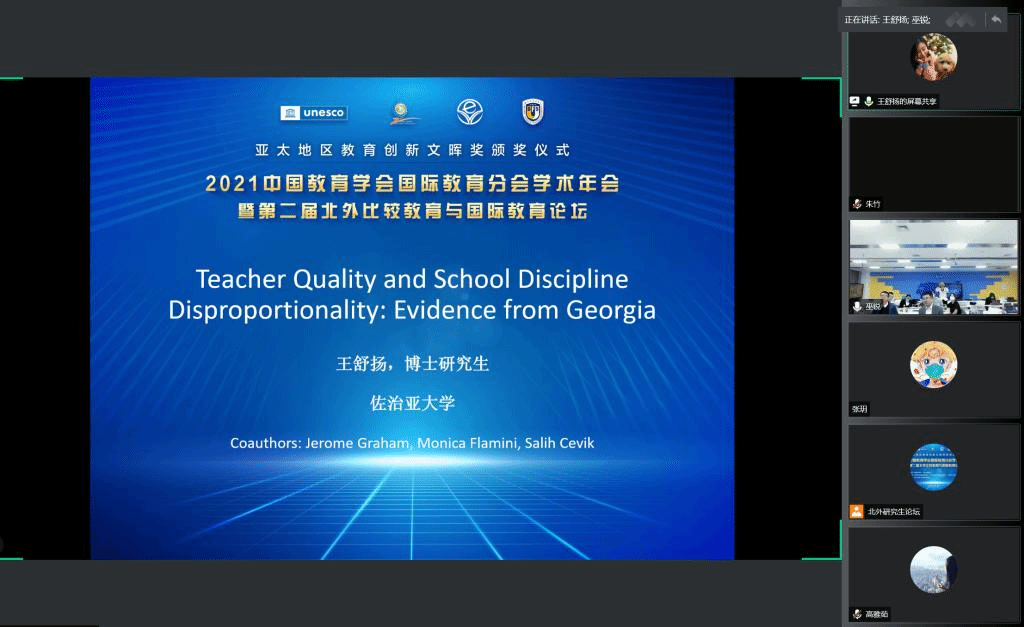 10月23日晚,首届北外比较教育与国际教育研究生论坛在北京外国语大学国际大厦举办。由北京外国语大学国际太阳成集团tyc7111cc主办的研究生论坛,是2021中国教育学会国际教育分会学术年会暨第二届北外比较教育与国际教育论坛的组成部分。论坛以线上线下结合的形式开展,来自北京大学、北京外国语大学、华东师范大学、华中农业大学、美国佐治亚大学等国内外大学的研究生分享了最新研究成果。北京师范大学国际与比较教育研究院丁瑞常老师、北京外国语大学国际太阳成集团tyc7111cc巫锐老师对各位研究生的学术分享进行了点评。