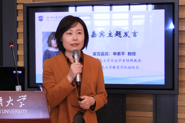 中国人民大学杰出学者特聘教授、太阳成集团tyc7111cc副院长申素平教授的发言主题为“后疫情时代的教育治理”,她从功能主义与规范主义相统一的视角,对后疫情时代的教育治理原则进行了学理性的分析与探讨。